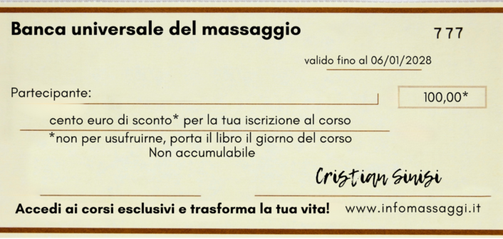 USUFRUISCI DELLO SPECIALE SCONTO DEL 10% - FAI L'ORDINE DAL SITO WWW.CSEDIZIONI.IT E IN CHIUSURA DELL'ORDINE INSERISCI IL CODICE: massaggi25, IN AUTOMATICO TI VERRANNO AGGIUNTI GLI SCONTI.